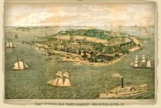 After an enjoyable few weeks assigned to light duty with the Veteran Reserves corps., George was transferred to Fortress Monroe, a military installation in Hampton,Virginia at the southern tip of the Virginia Peninsula. Fort Monroe guarded the channel between the Chesapeake Bay and Hampton Roads. This impenetrable six-sided stone fort was completely surrounded by a moat.